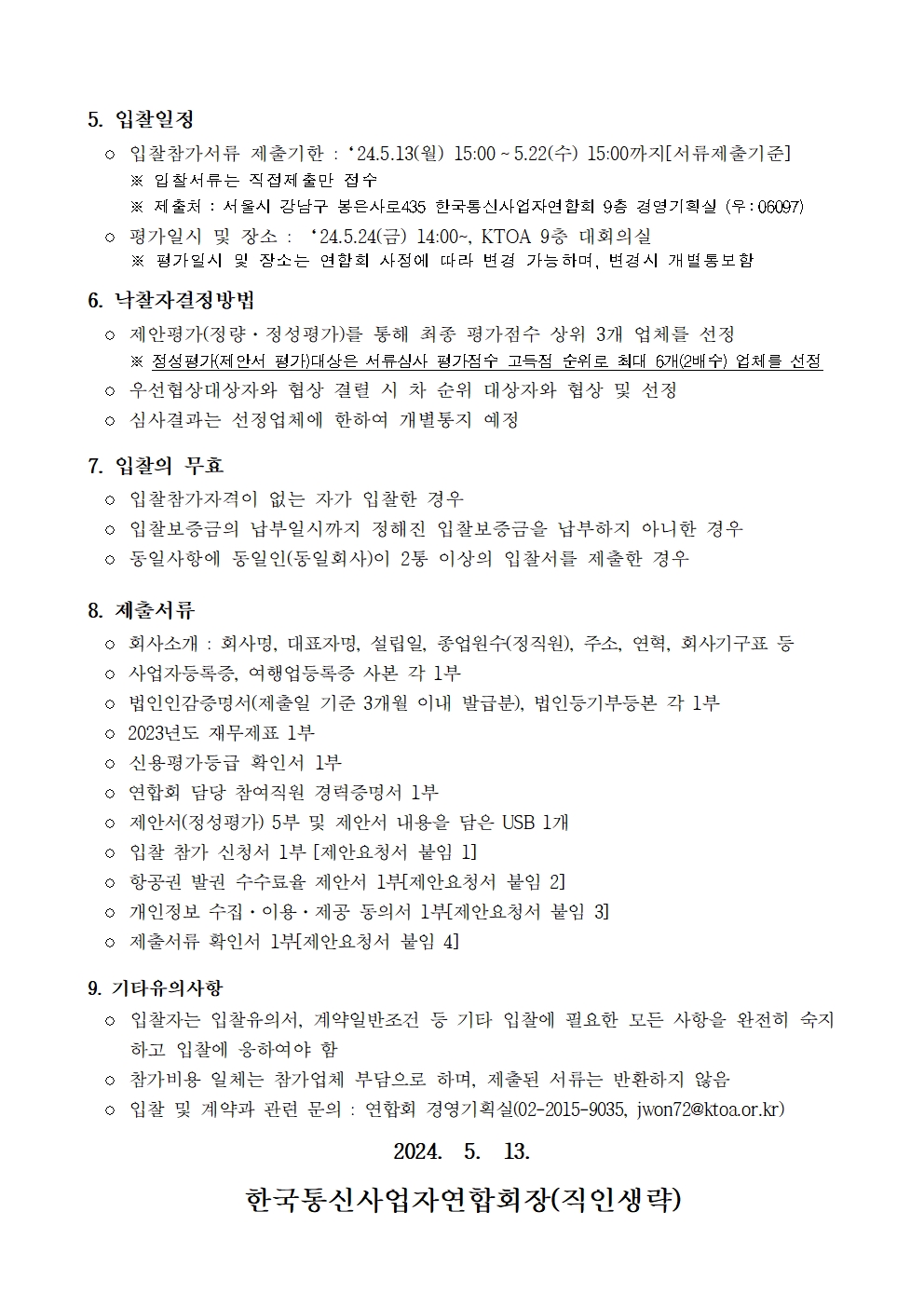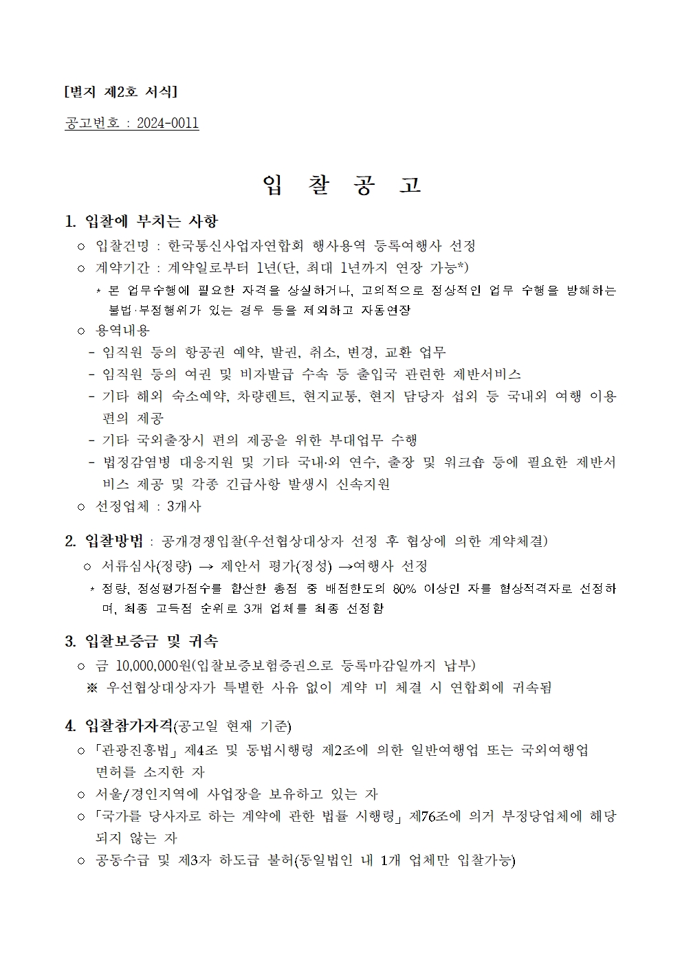 KTOA 행사용역 등록여행사 선정 입찰공고