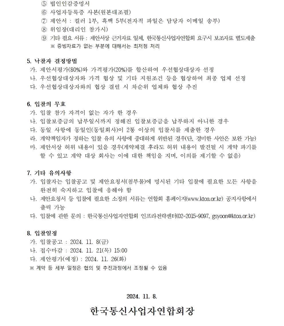 (수정) 「이동통신 무선국 정비관리시스템 유지운영 용역」 입찰공고