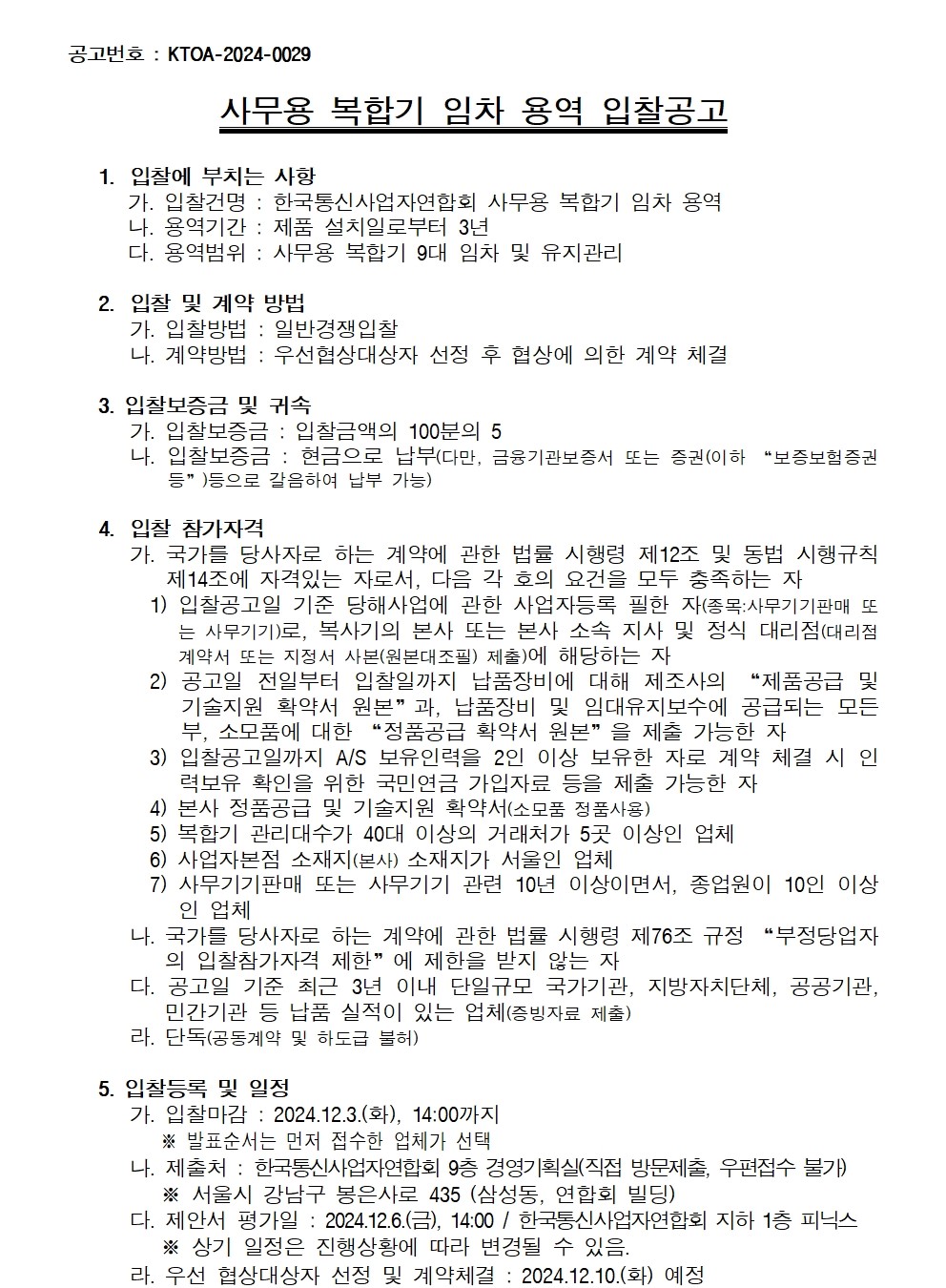 사무용 복합기 임차용역 입찰공고