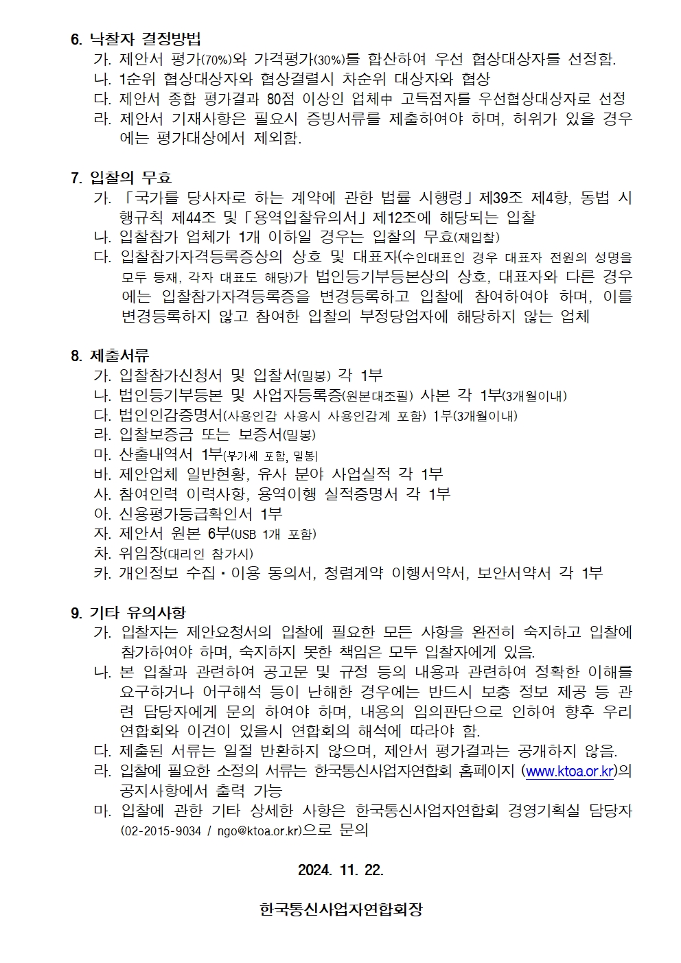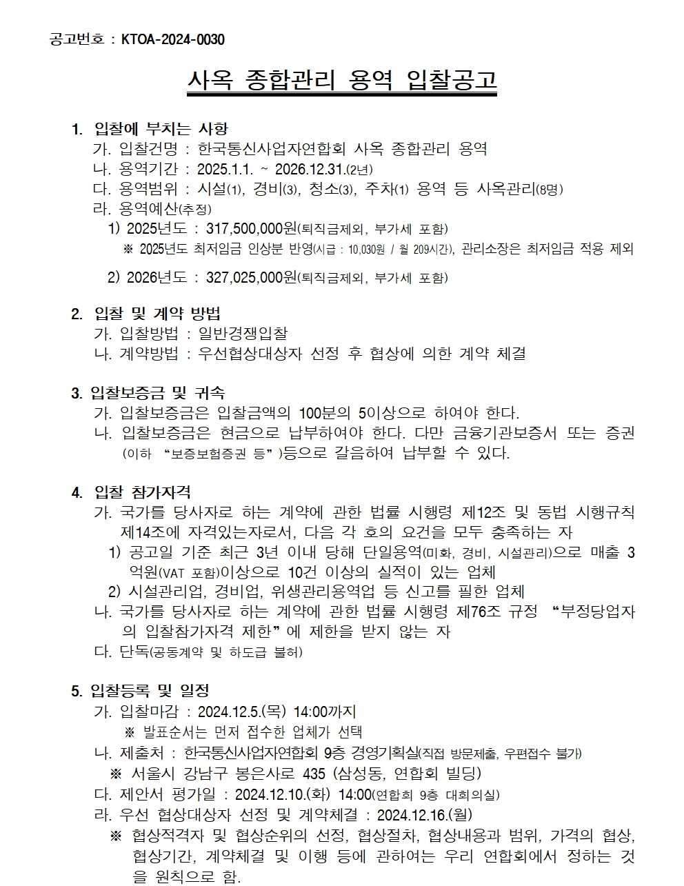 사옥 종합관리 용역 입찰공고