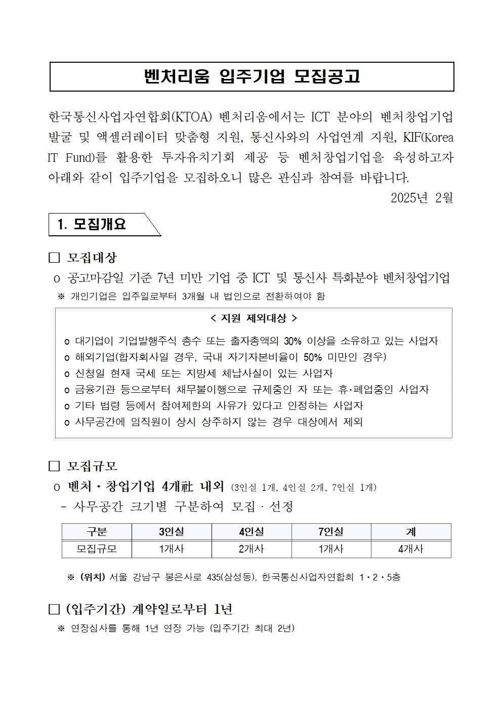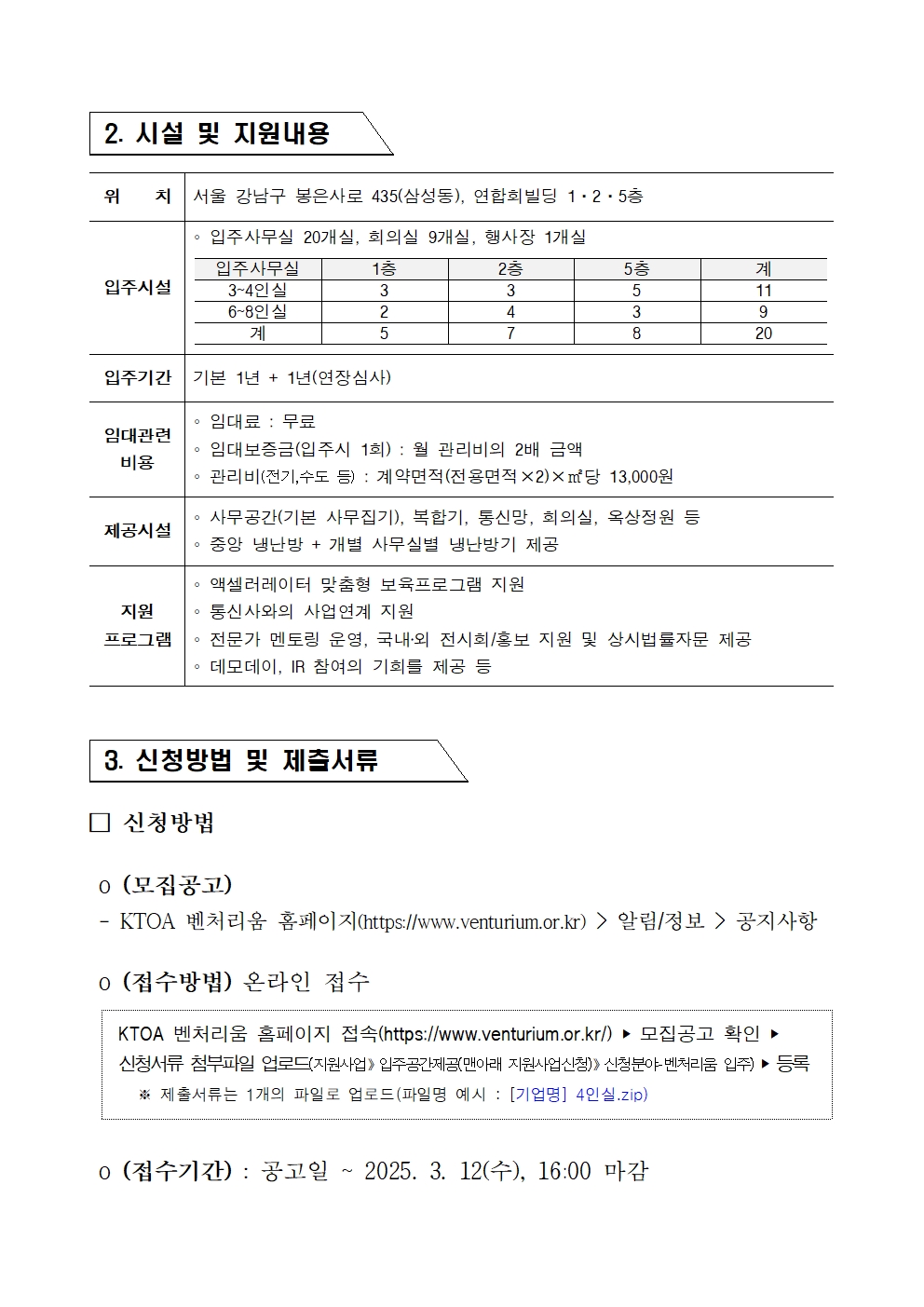 벤처리움 입주기업 모집공고