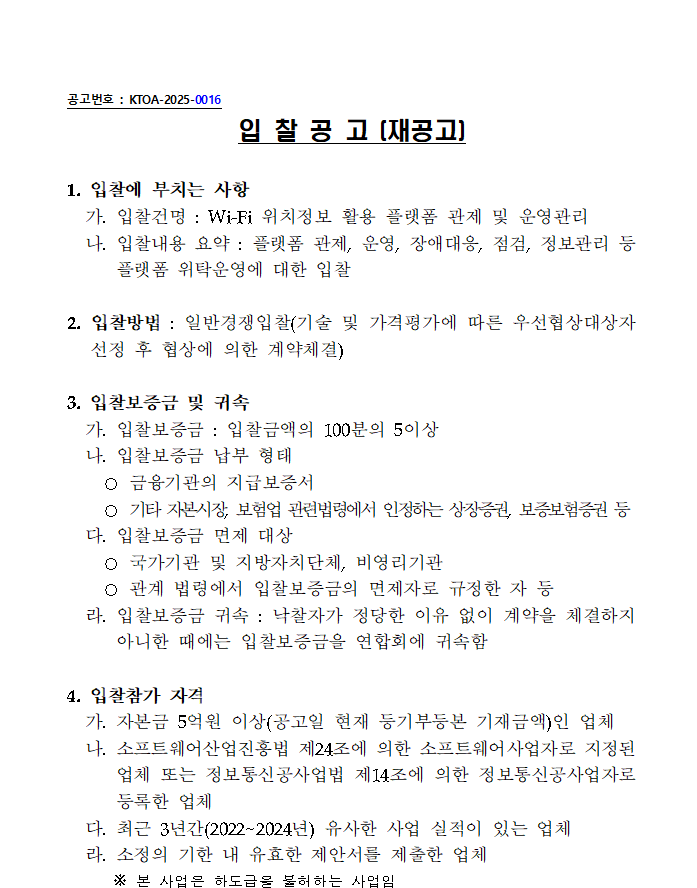 (재공고) '25년 위치정보 활용 플랫폼 관제·운영관리 업체 선정’ 입찰공고