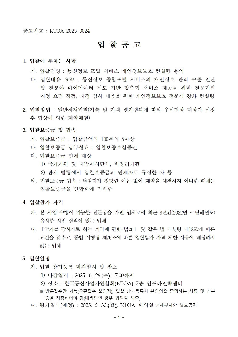 (재공고)통신정보 포털 서비스 개인정보보호 컨설팅 용역