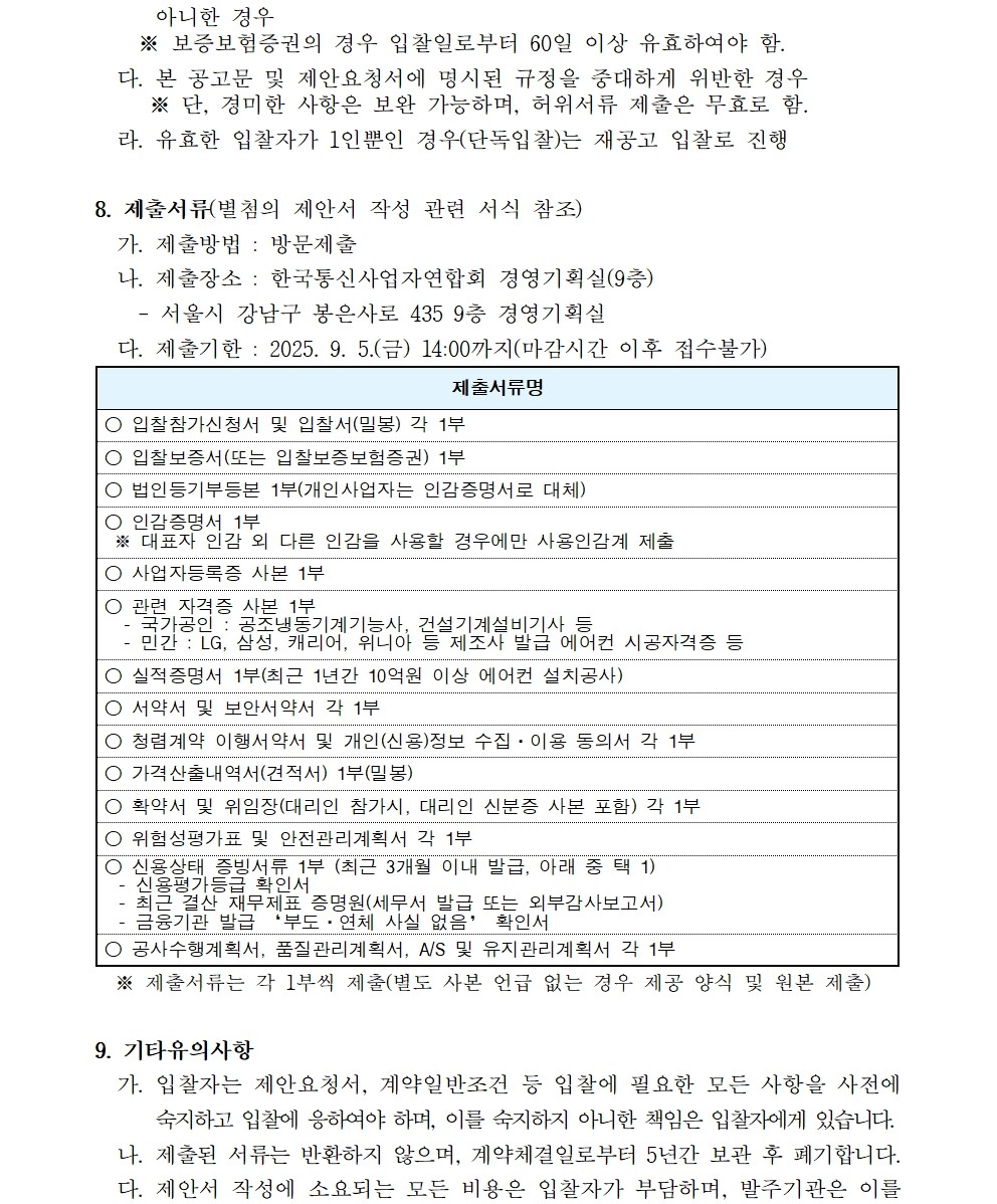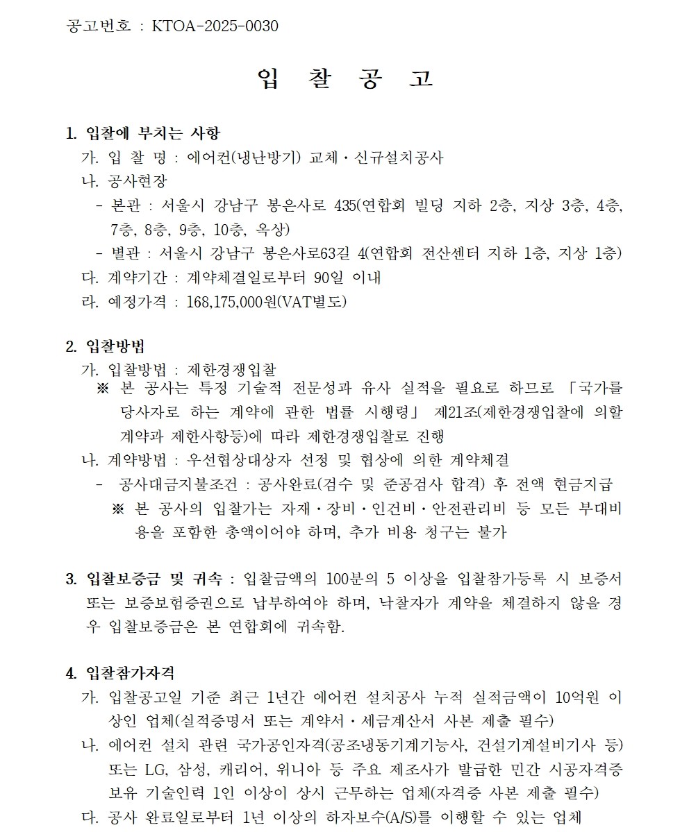 에어컨(냉난방기) 교체·신규설치공사 입찰공고
