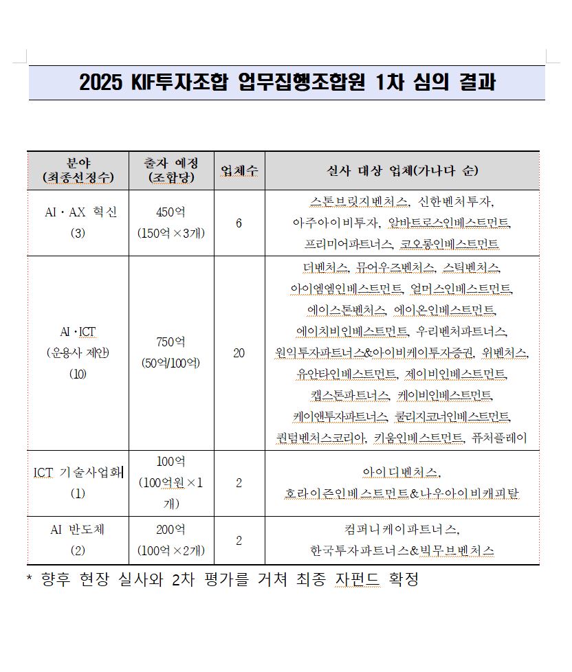 2025년 KIF투자조합 업무집행조합원 1차 심의 결과
