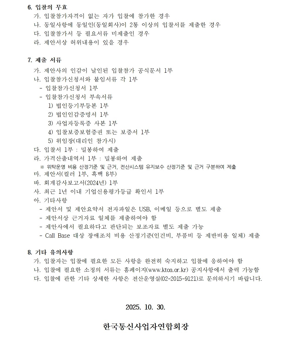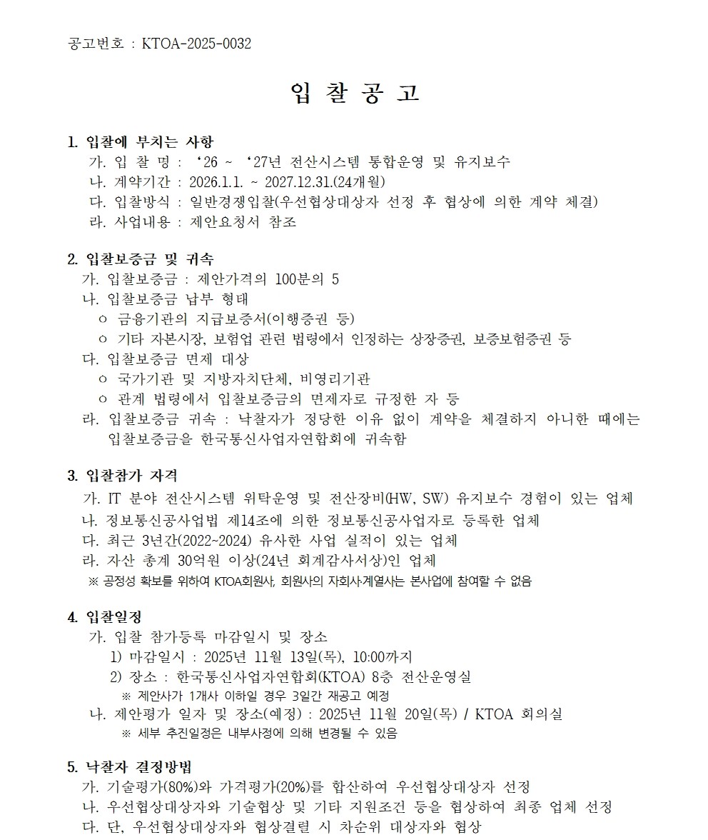KTOA 전산시스템 통합운영 및 유지보수 입찰공고