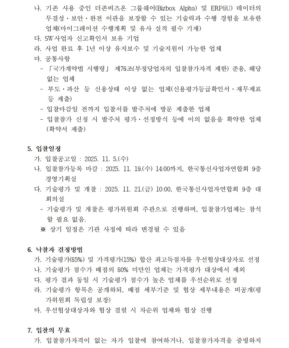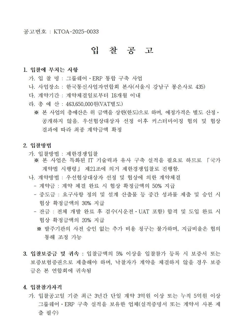 그룹웨어·ERP 통합 구축 사업 입찰공고