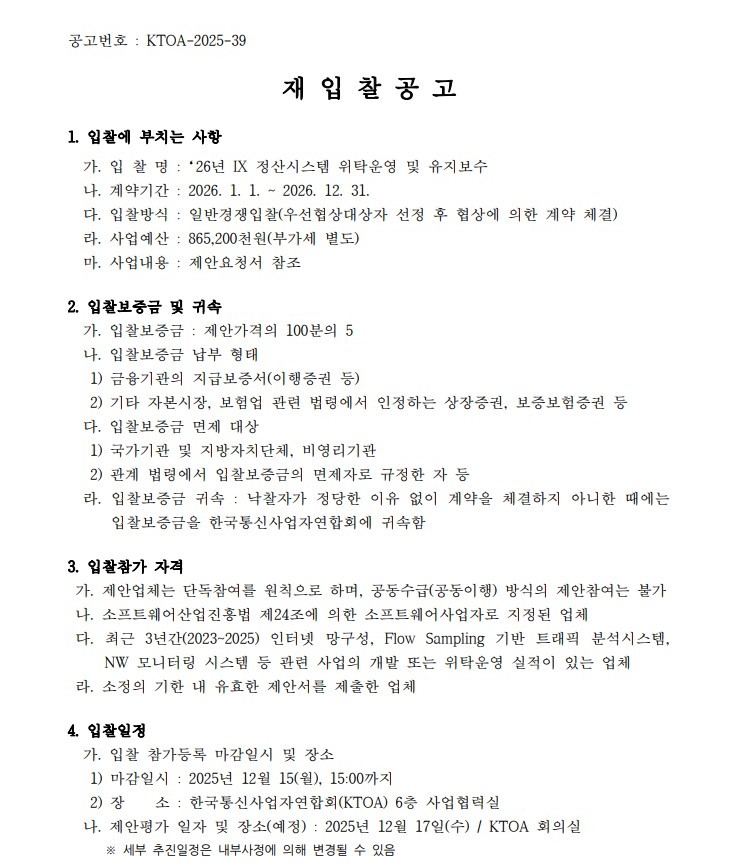(재공고)2026년 IX정산시스템 위탁운영 및 유지보수 입찰공고