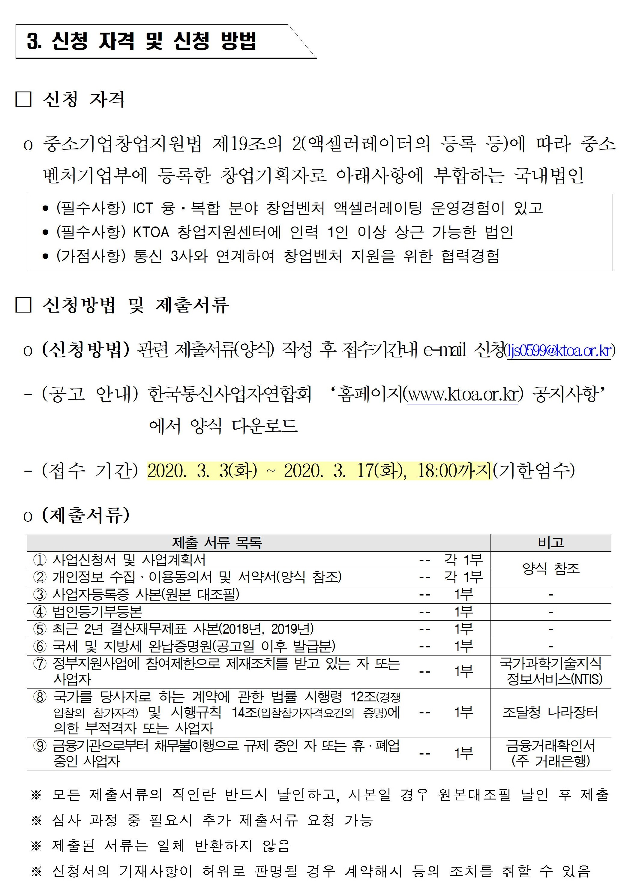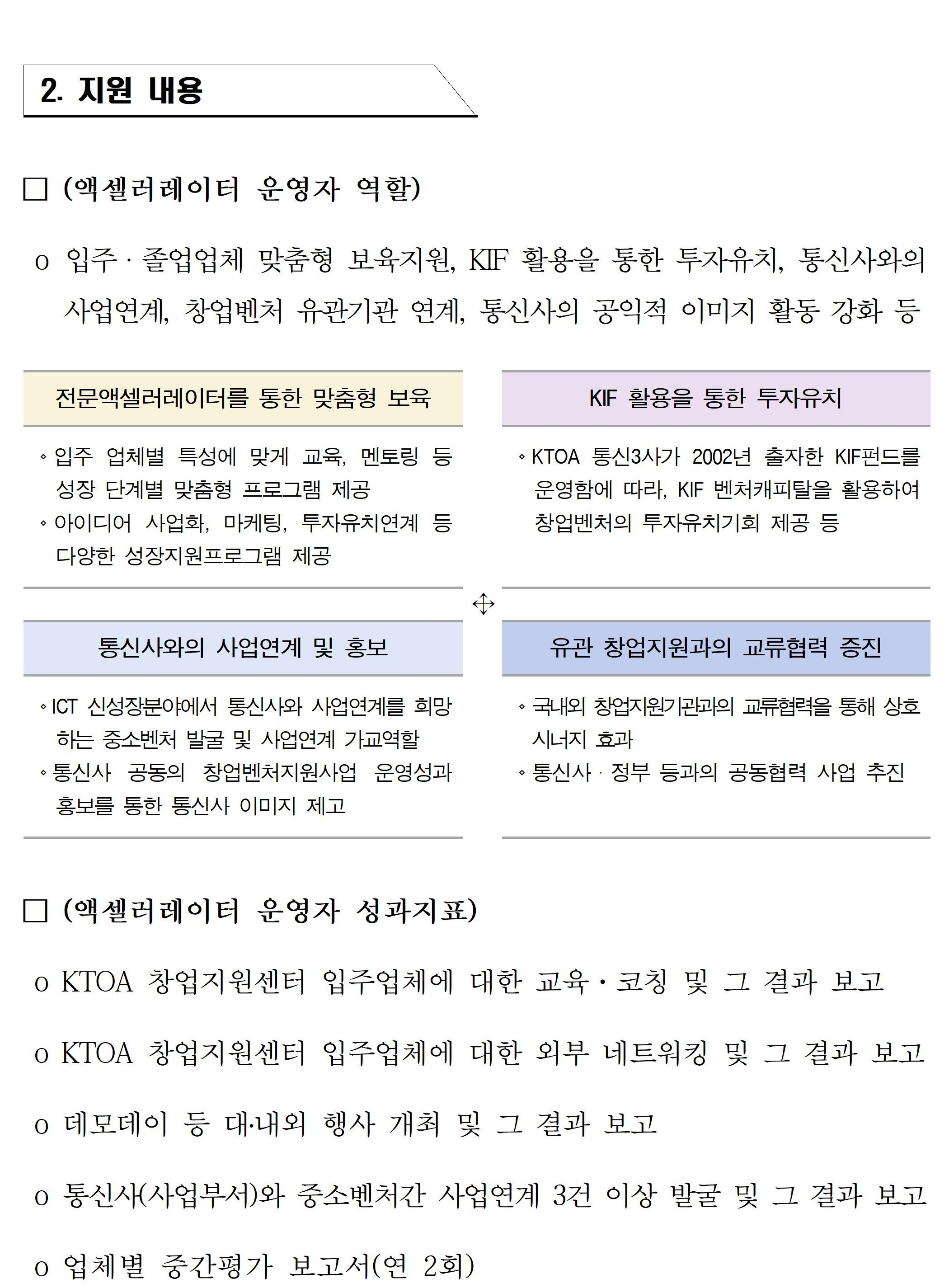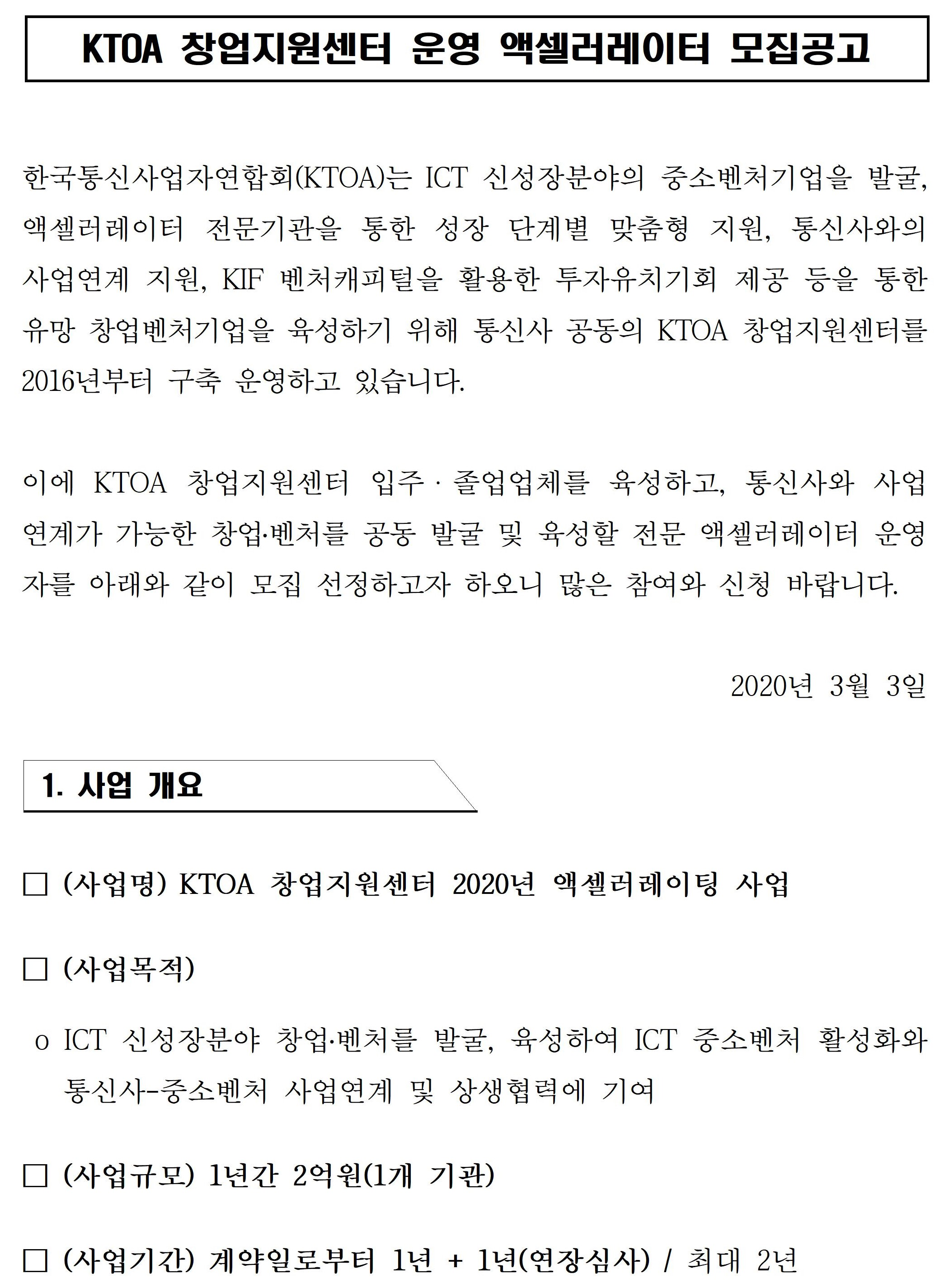 KTOA 창업지원센터 운영 엑셀러레이터 모집공고