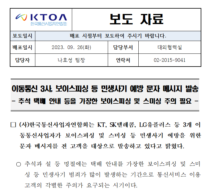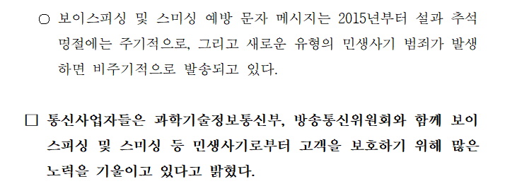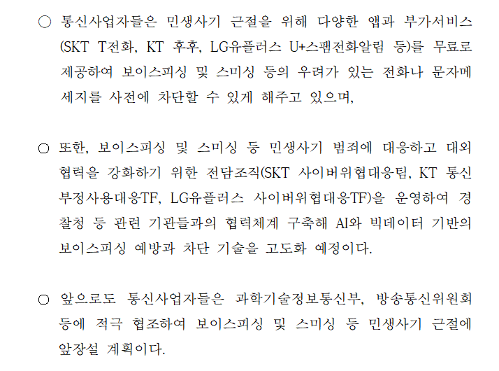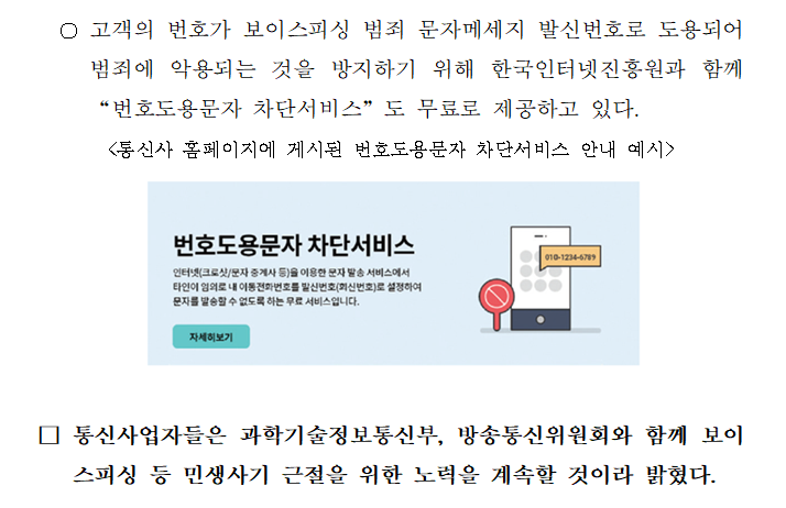 [보도자료] 이동통신 3사, 보이스피싱 등 민생사기 예방 문자 메시지 발송
