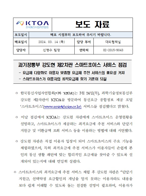[보도자료] 과기정통부 강도현 제2차관 스마트초이스 서비스 점검