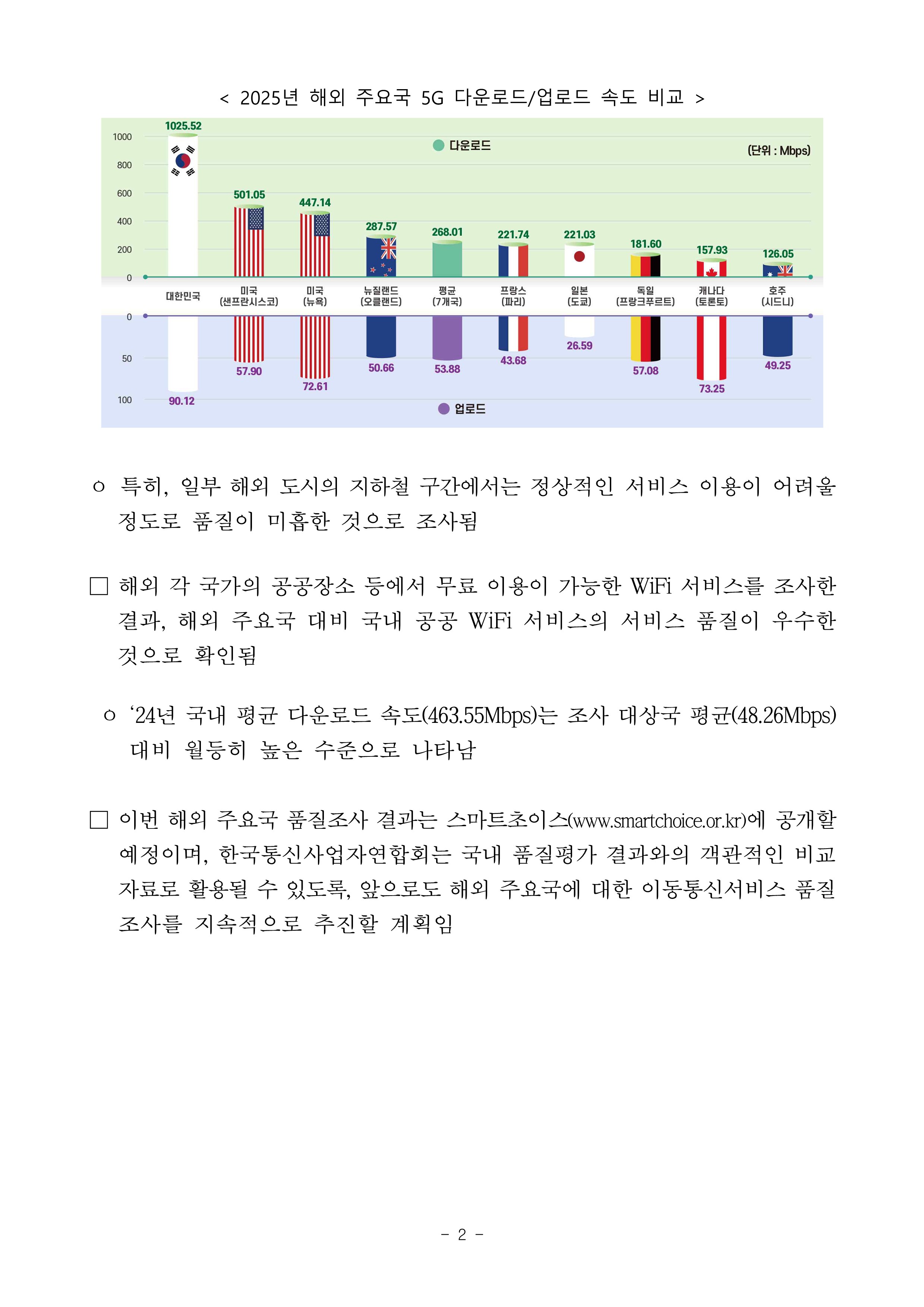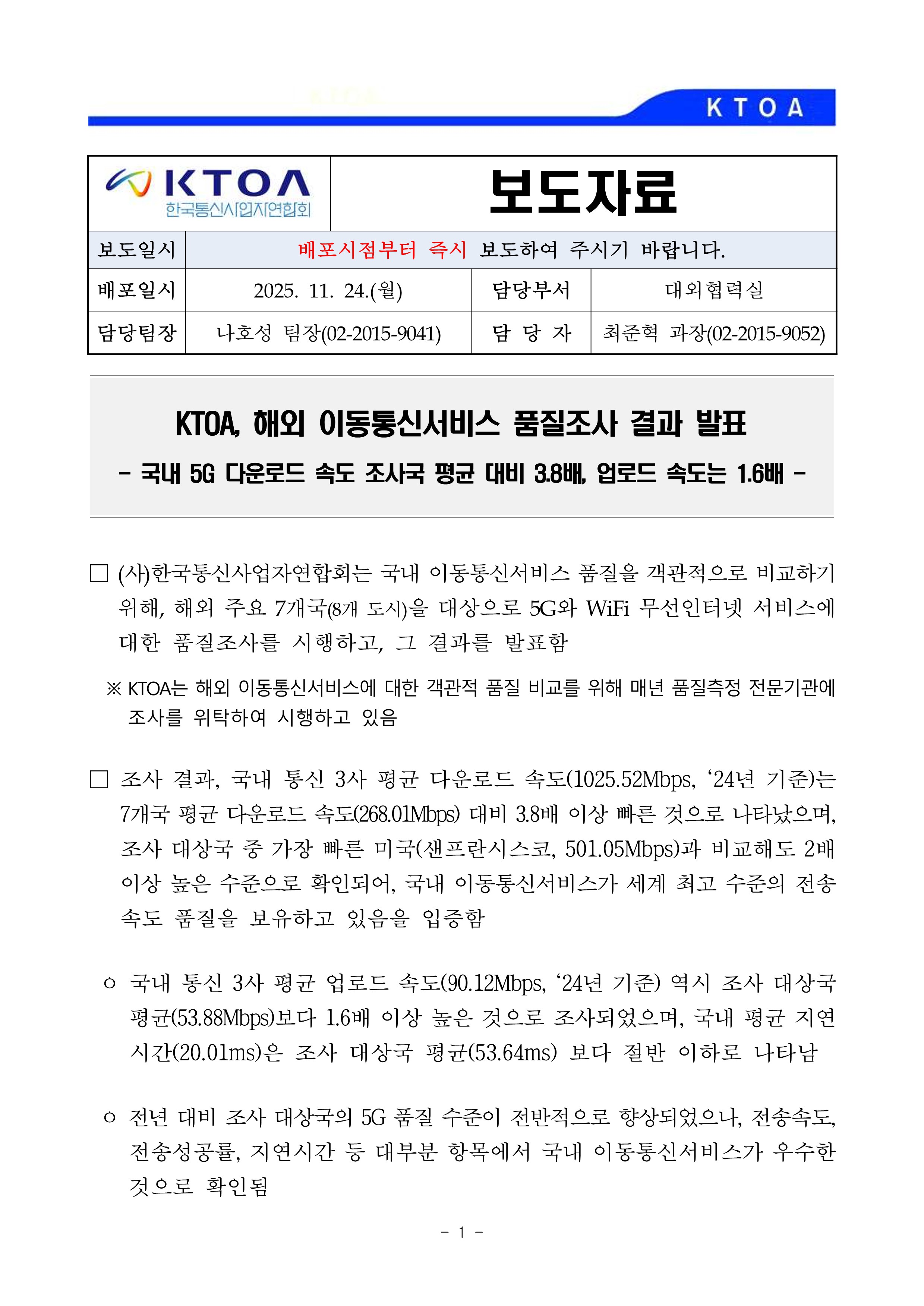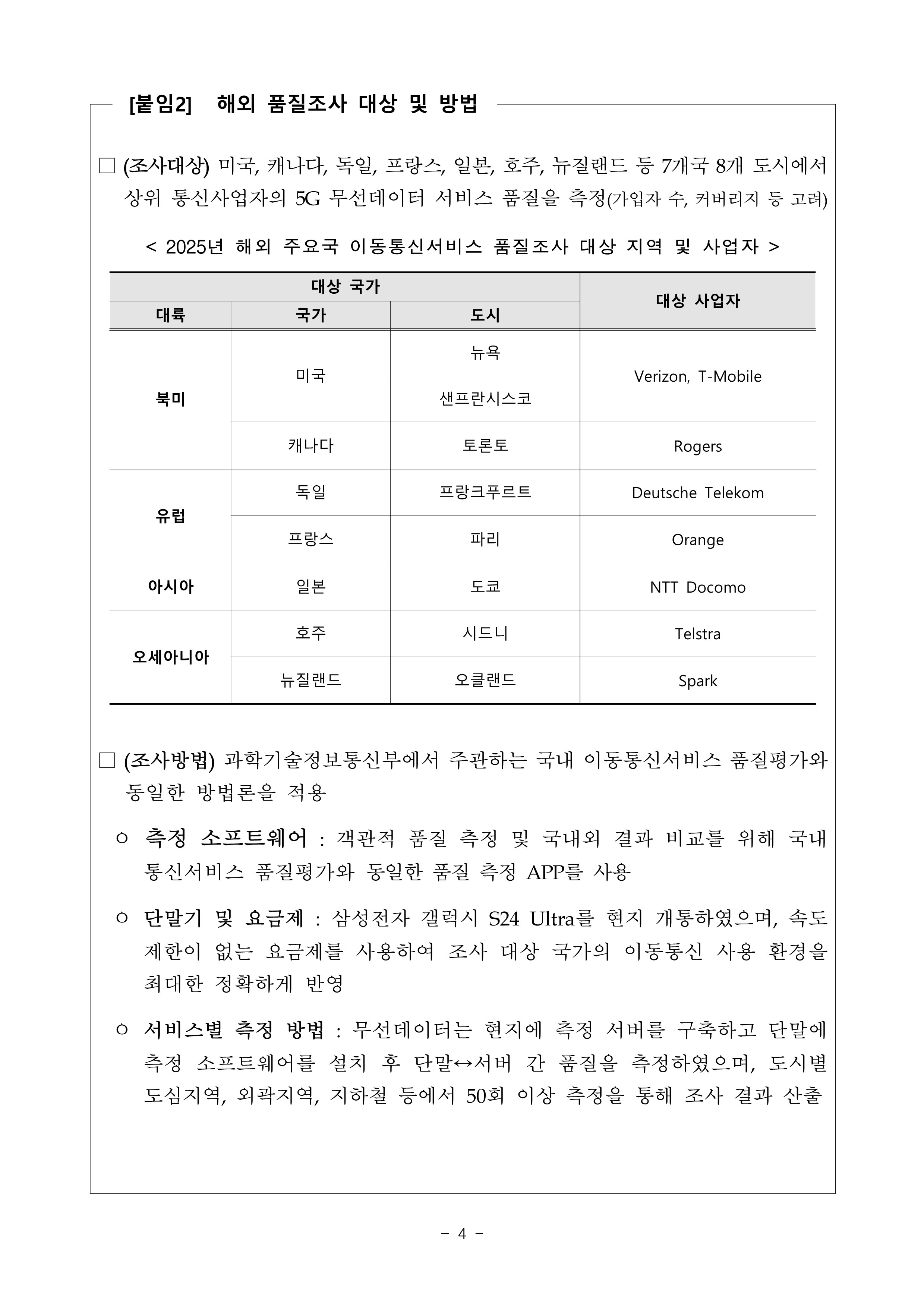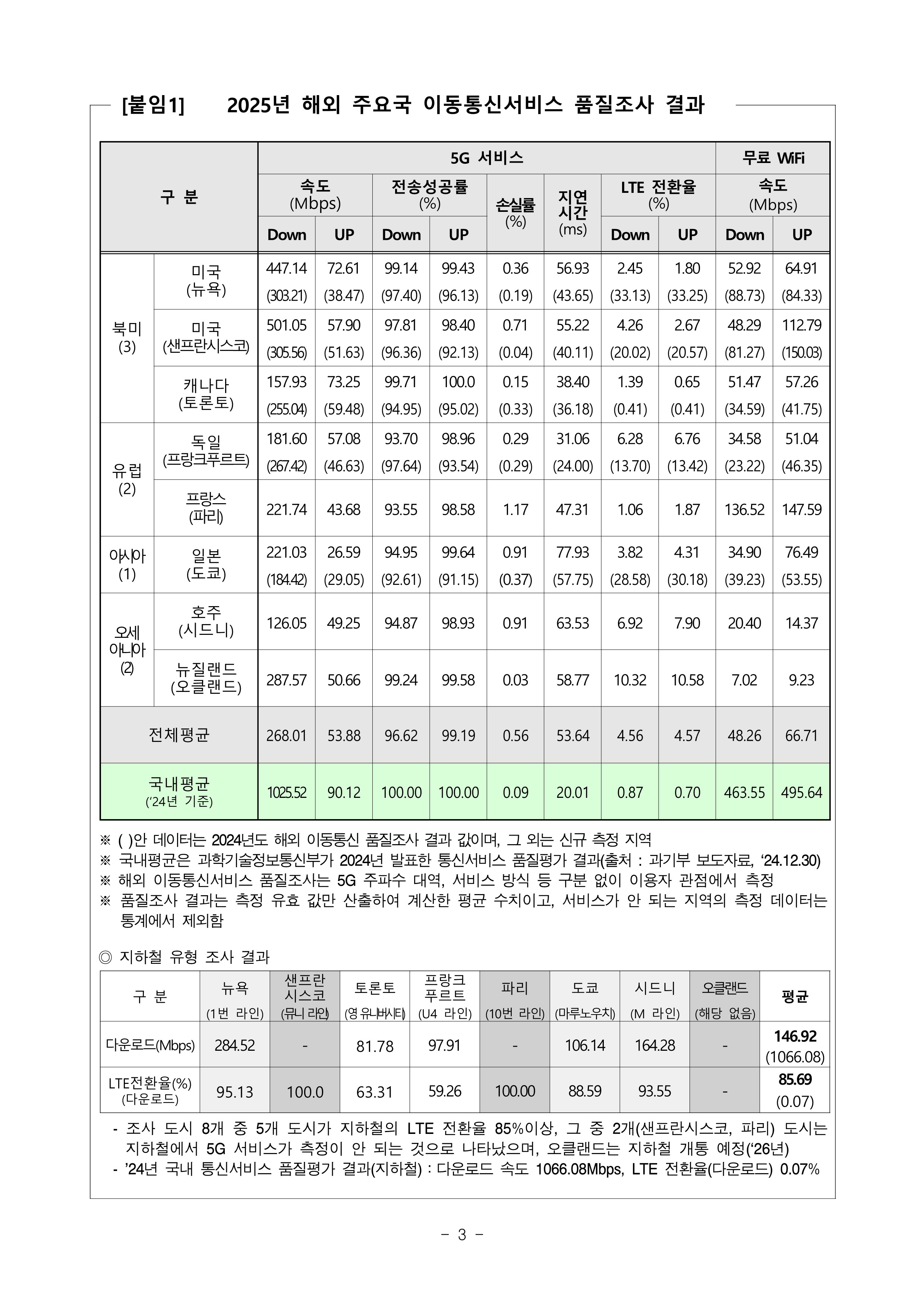[보도자료] 2025년 해외 이동통신서비스 품질조사 결과 발표